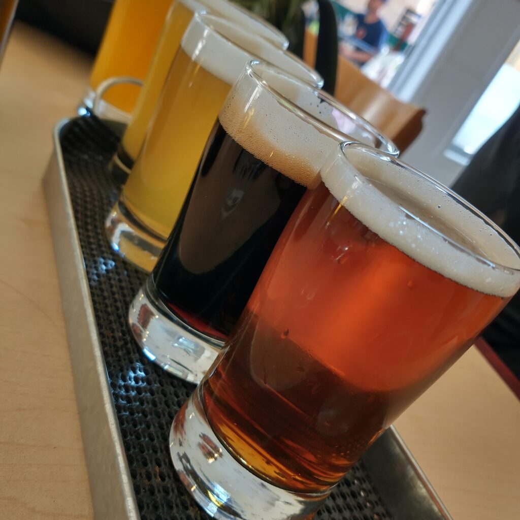 sélection de bières de styles variés, ‘’old school’’ et plus modernes ainsi qu’un menu de style pub classique et végé.