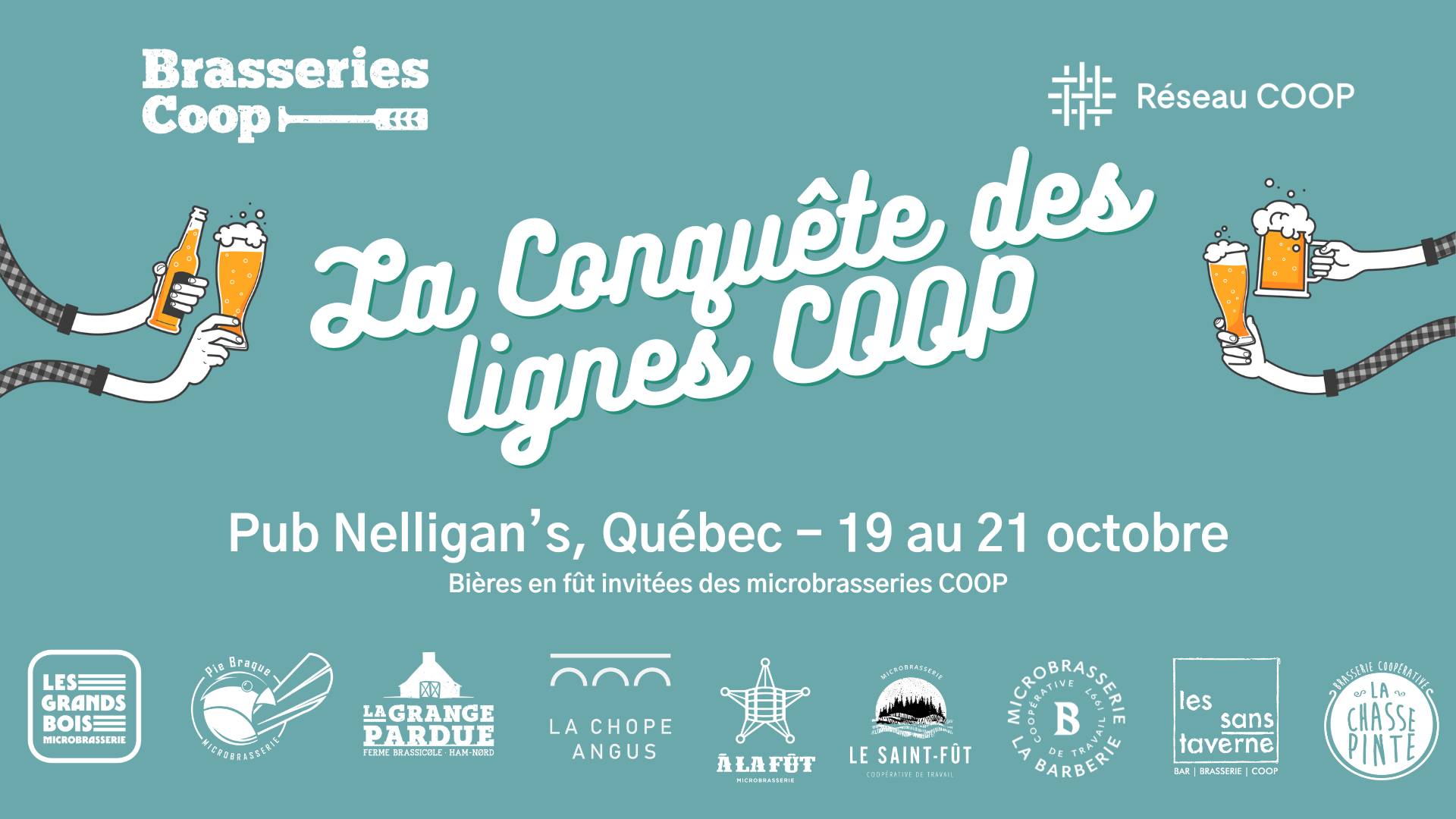 Tap take over! Les micros prennent d’assaut les lignes du bistro 🍻 Durant la semaine de la coopération, on vous donne rendez-vous au pub irlandais Nelligan’s du 19 au 21 octobre dès 16h.